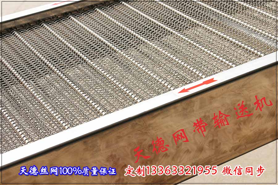 網帶輸送機主要技術參數: 1、 網帶寬度:150~5500mm 2、 網帶速度:0.15~0.50m/min 3、 使用溫度:-40℃~1300℃ 不銹鋼輸送帶的邊沿形式:彎邊、鐓頭、焊邊等形式。 不銹鋼輸送機特點: 1、 具有良好的耐侵蝕、耐磨損、耐高溫等機能。2、該輸送機設計公道、結構合理、規格樣式多、安裝利便、運行可靠等長處。 在這個物欲橫流的社會,在這個以次充好的社會,我們無論怎樣都要保持自己的一份真心和真誠,為了公司長久的發展,我們一定會保證工廠的每一件產品都要質量合格才會出廠,保證客戶的利潤,保證公司發展的前提。