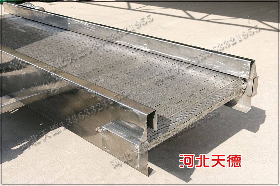 一、資料的選用——大、小鏈板輸送帶采用優異碳素結構鋼進行沖壓成型。