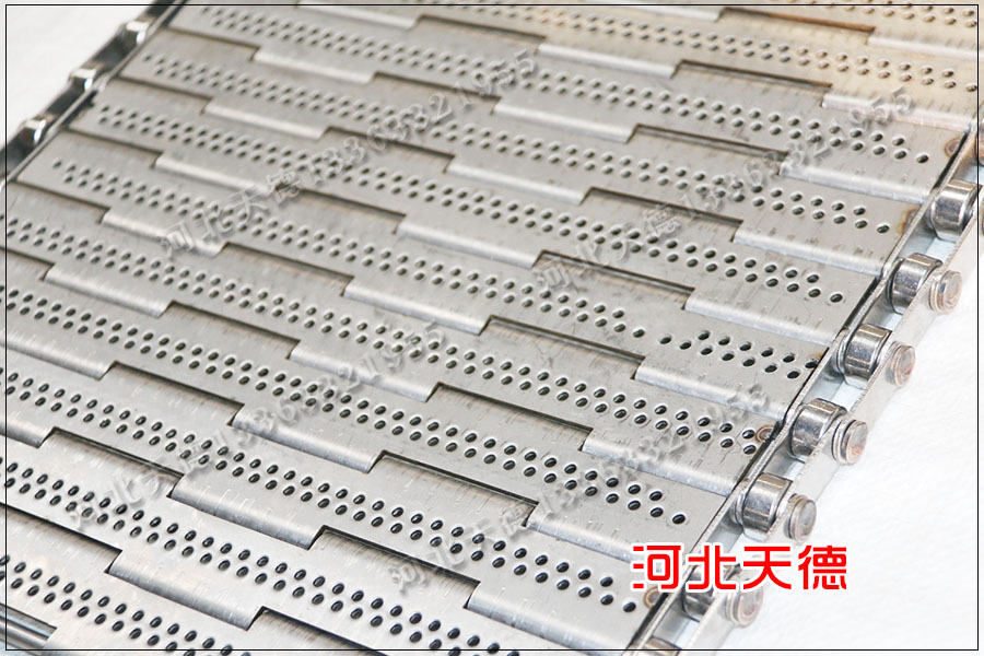 河北天德輸送網(wǎng)帶生產(chǎn)銷售輸送鏈板、不銹鋼鏈板、打孔鏈板輸送帶、擋邊鏈板網(wǎng)帶、提升機鏈板等等以及各種規(guī)格的耐高溫不銹鋼輸送帶。