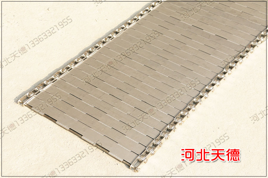 河北天德絲網制品有限公司生產輸送鏈板、金屬輸送帶、鏈板輸送帶等各種規格的鋼板鐵板輸送帶。