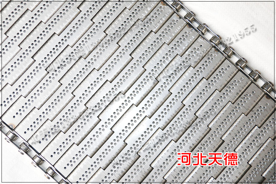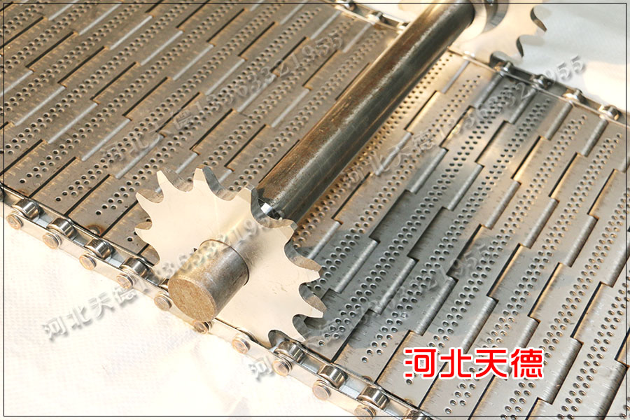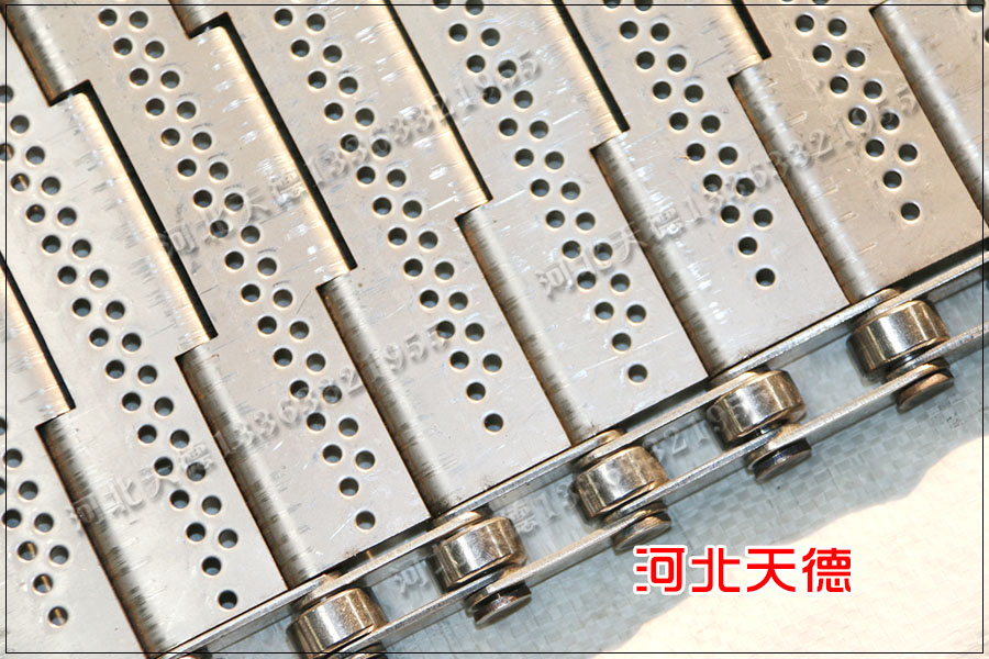 鏈板采用厚度1.5毫米鋼板折彎而成,鏈條節距為50.8毫米,鏈條的節距與鏈板的節距相同,用10毫米的鋼桿鏈接使用。