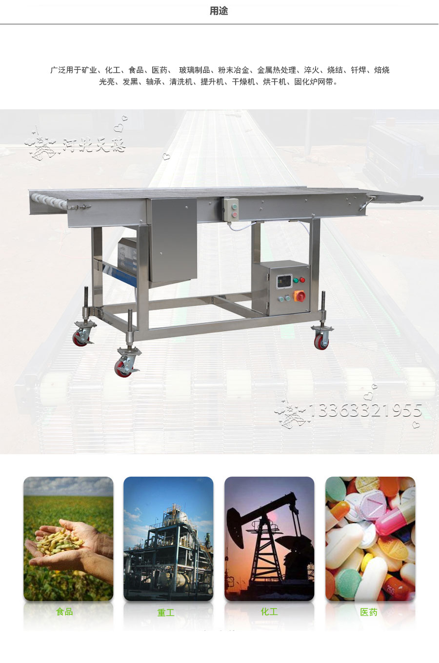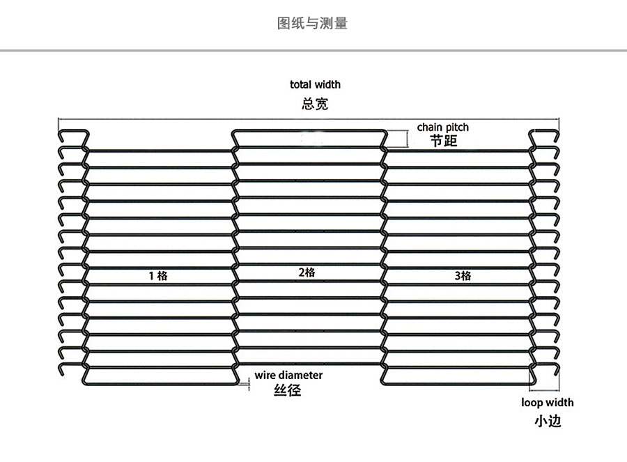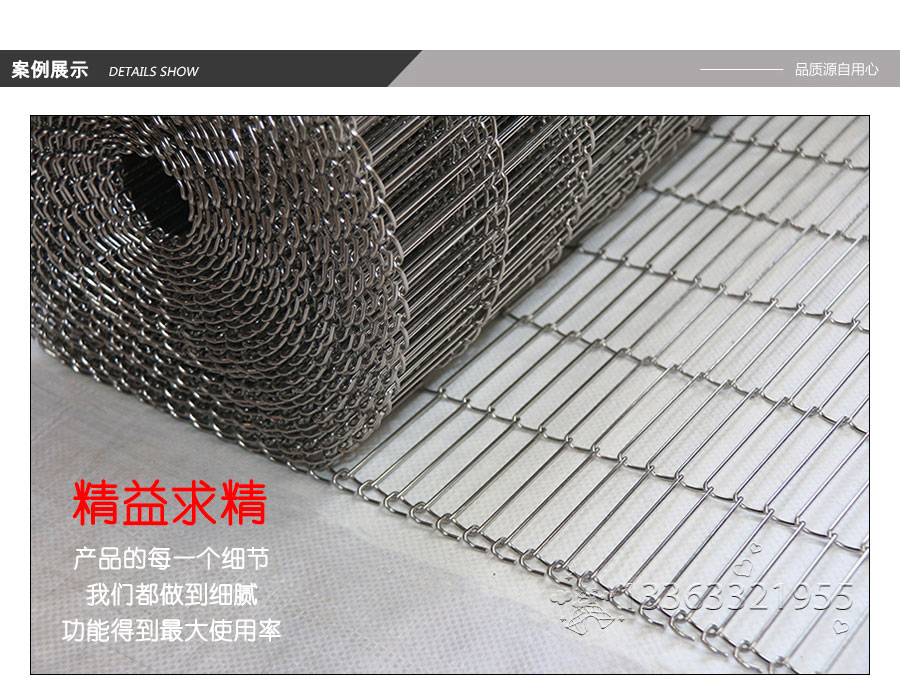 不銹鋼網帶屬于非標準件,我們將根據你提供的規格長寬,材質,不銹鋼絲線徑,編制結構尺寸,支軸直徑,支軸間距,鏈條型號等數據制作.